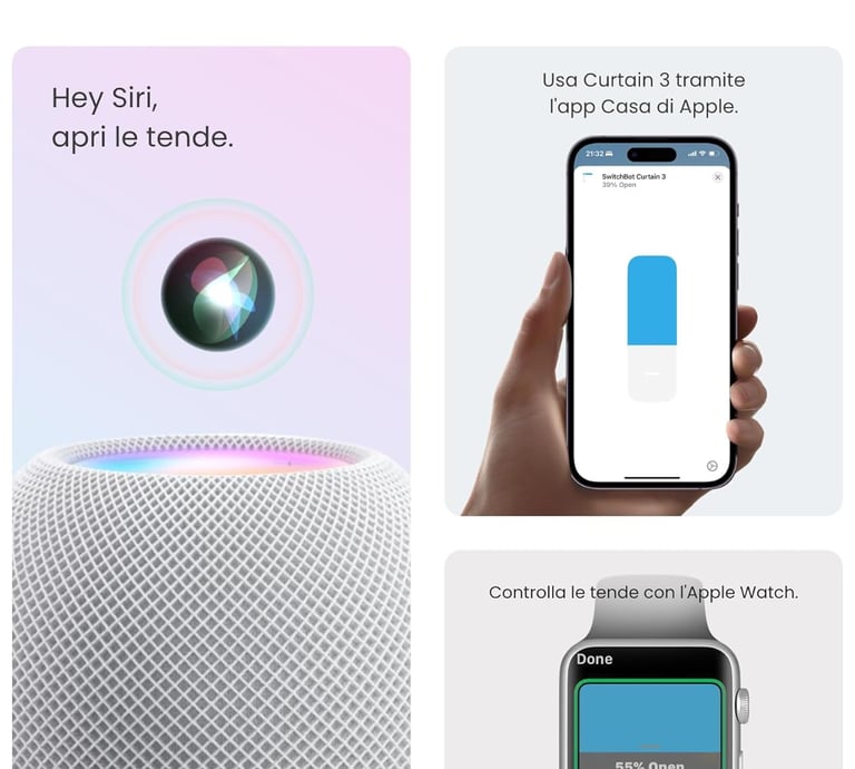 Ma il vero salto di qualità avviene con lo SwitchBot Hub 2 (o Hub 3). Grazie al supporto allo standard Matter, la tenda viene vista nativamente da Apple HomeKit, Alexa e Google Home, garantendo una velocità di risposta fulminea e la possibilità di creare automazioni complesse.