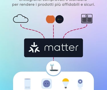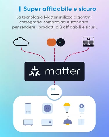 Matter permette ai tuoi dispositivi di comunicare direttamente tra loro all'interno della tua rete domestica. I tuoi dati restano tra le mura di casa tua, senza passare necessariamente dai server cloud del produttore.